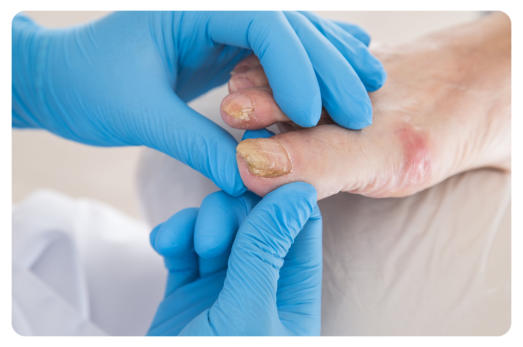 Abtragung von NagelmykosenNagelpilz macht sich durch unterschiedliche Erscheinungsformen am Nagel bemerkbar. Weil oft auch andere Erkrankungen ein ähnliches Erscheinungsbild erzeugen, sollte vor der Behandlung durch Labordiagnostik gesichert sein, dass es sich um einen Pilz handelt.Erfolgreiche Pilzbehandlung funktioniert nur bei gesicherter Diagnose und durch Ihre Mitarbeit!Die Behandlung erfolgt durch Abfräsen befallener Nagelteile und Anwendung fungistatischer oder fungizider Wirkstoffe.